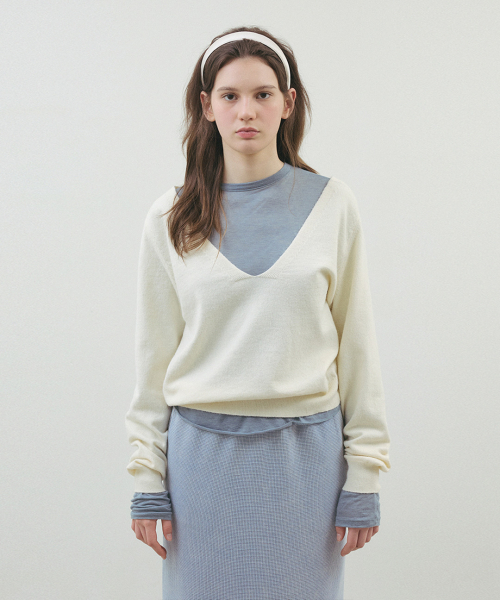 솔리드 딥 브이넥 니트_Vanilla