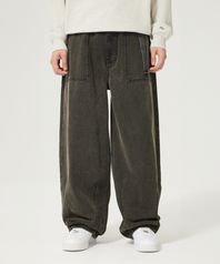 맨 벌룬핏 웨빙 데님 팬츠 블랙 워시드