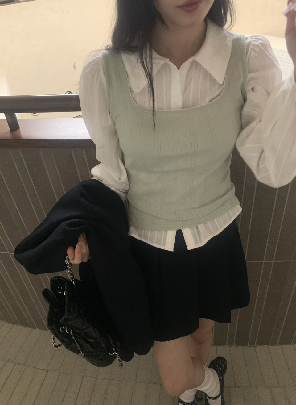 핀콧 카라 블라우스