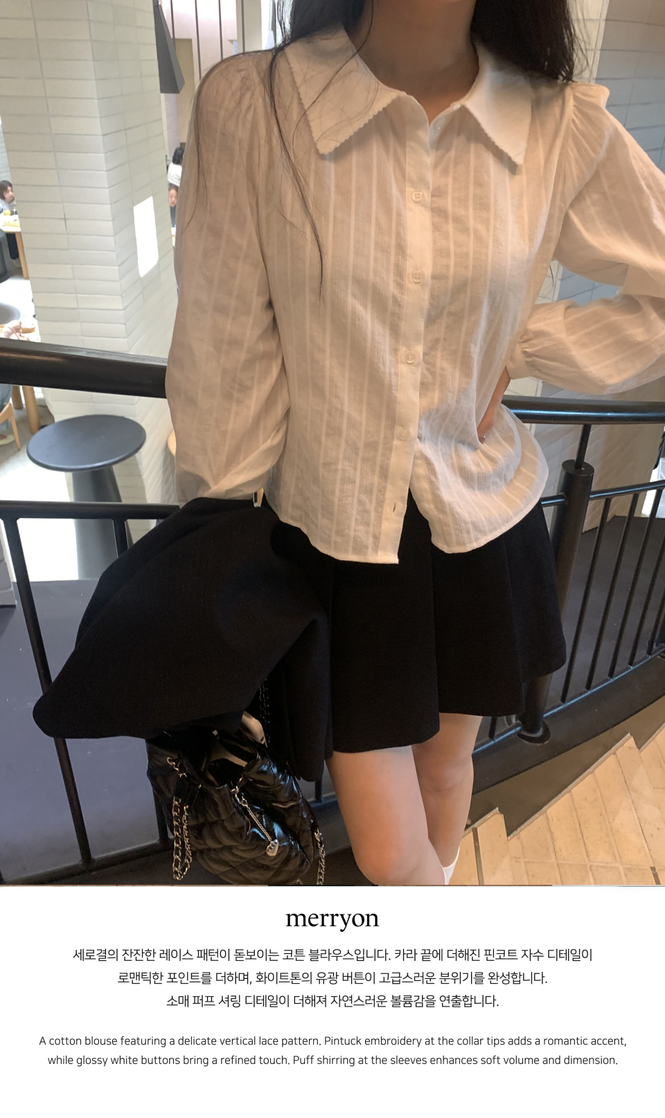 메리온(MERRYON)은 단정한 아름다움과 감정의 여백을 담아 현대적이고 세련된 스타일로 여성의 개성과 품격을 표현하는 컨템포러리 패션 브랜드입니다.