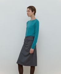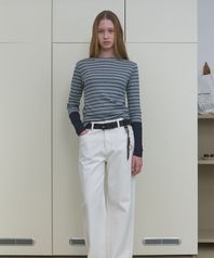 STRIPE 3/4 SLEEVE T-SHIRT_GREY/NAVY