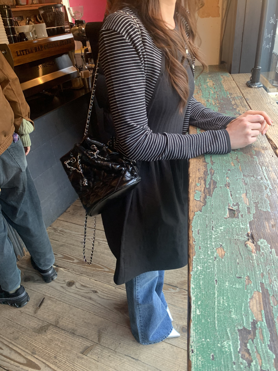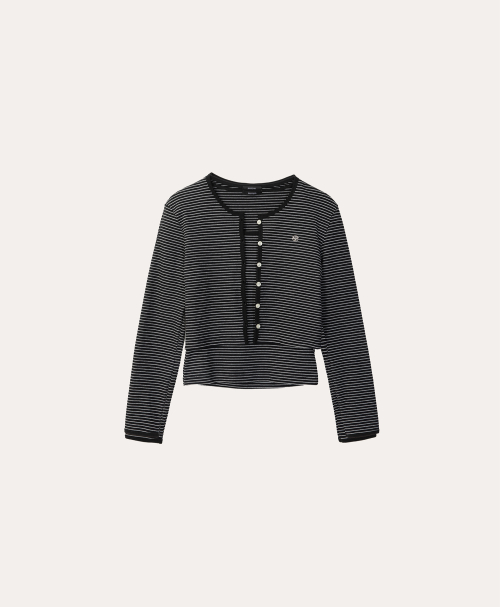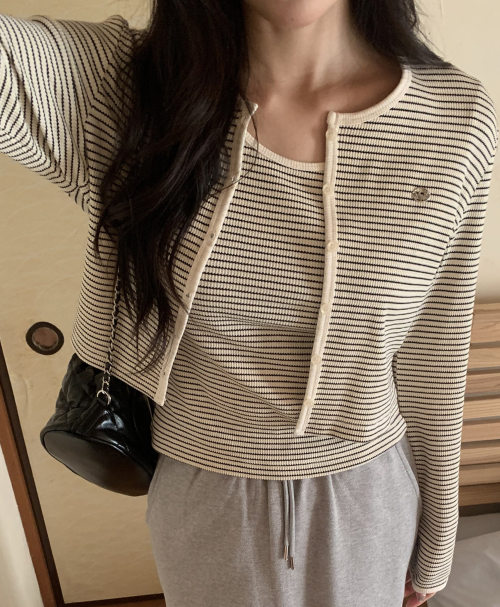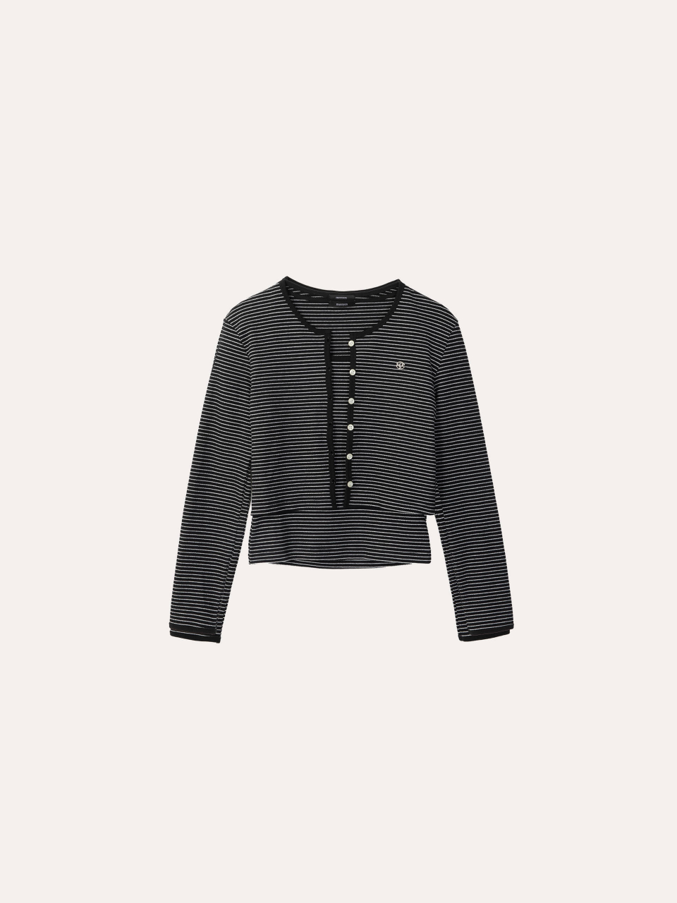로고 와펜 스트라이프 럭비 스웨트 셔츠 [CHARCOAL]