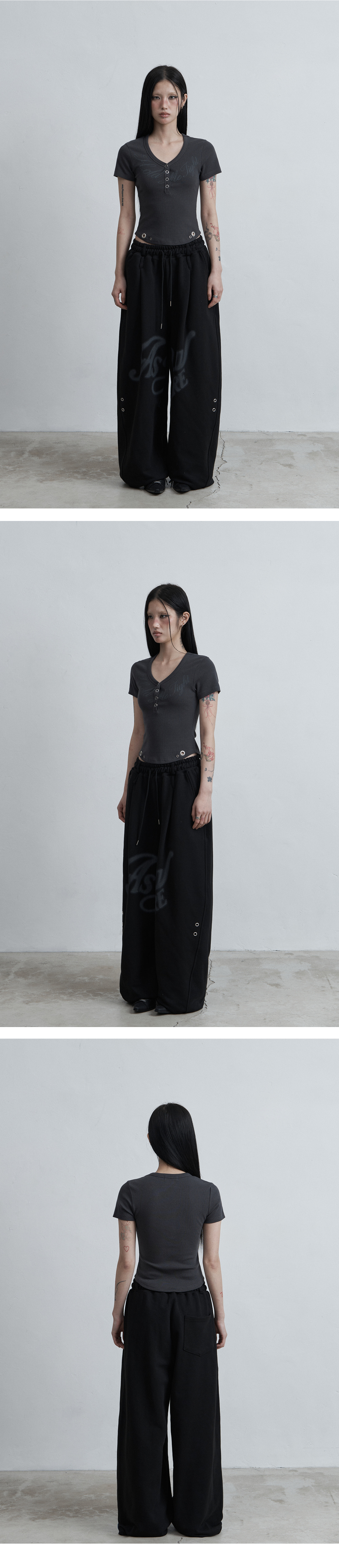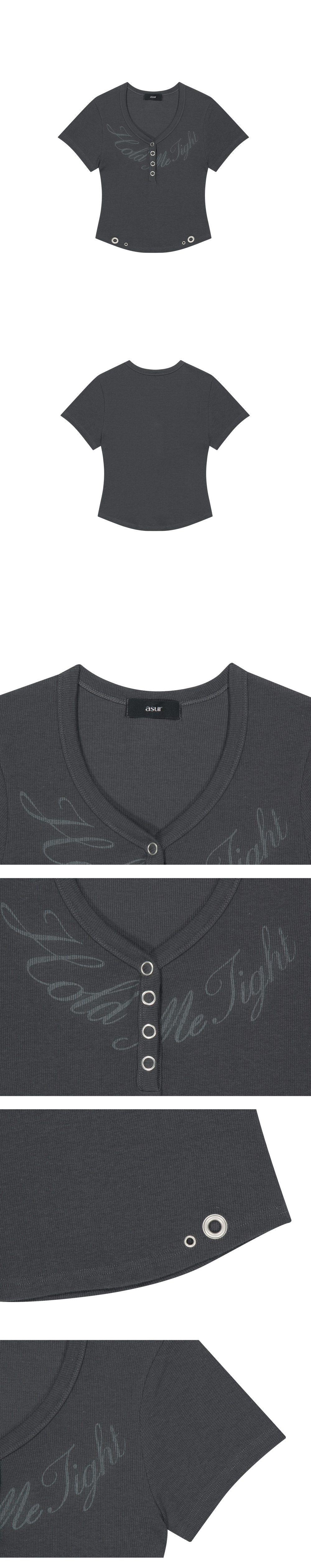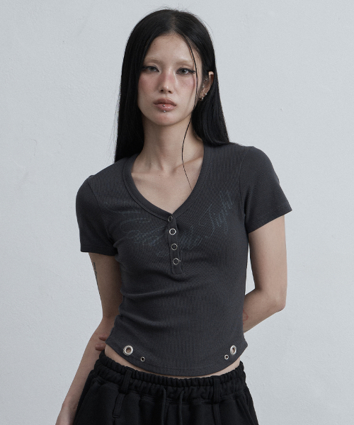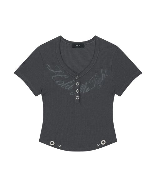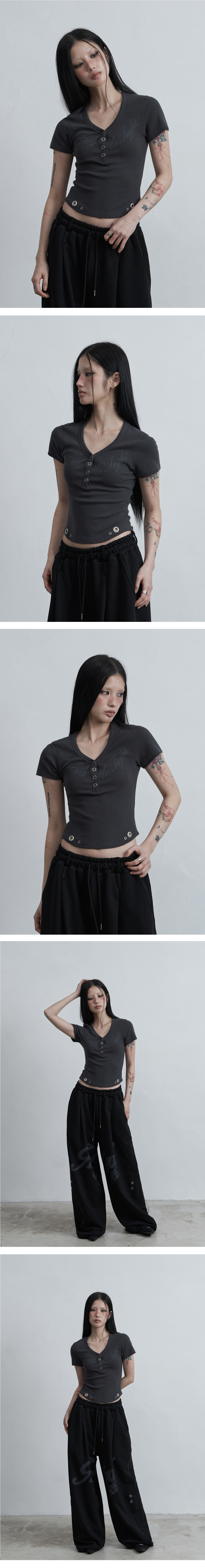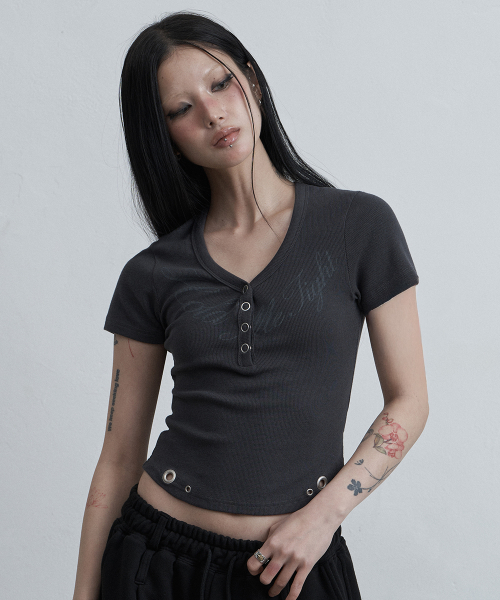 사이드 스냅 하프넥 티셔츠 그레이