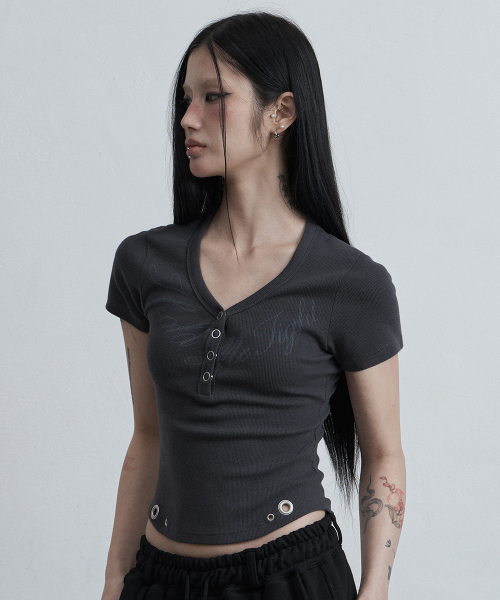 헨리 브이넥 홀드 티셔츠 차콜