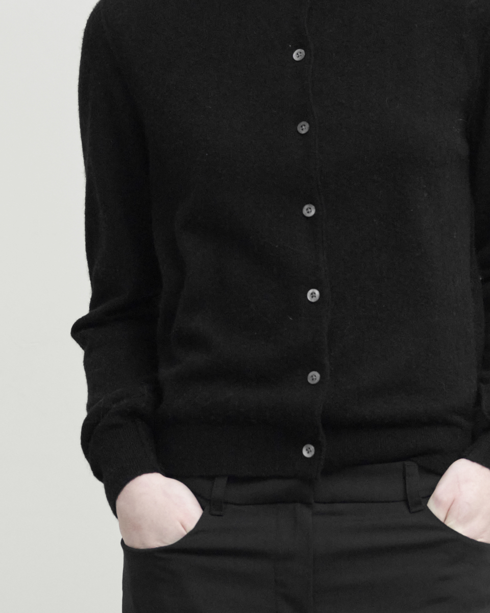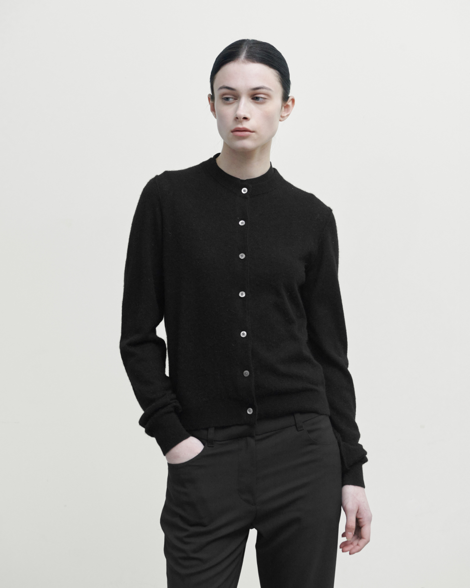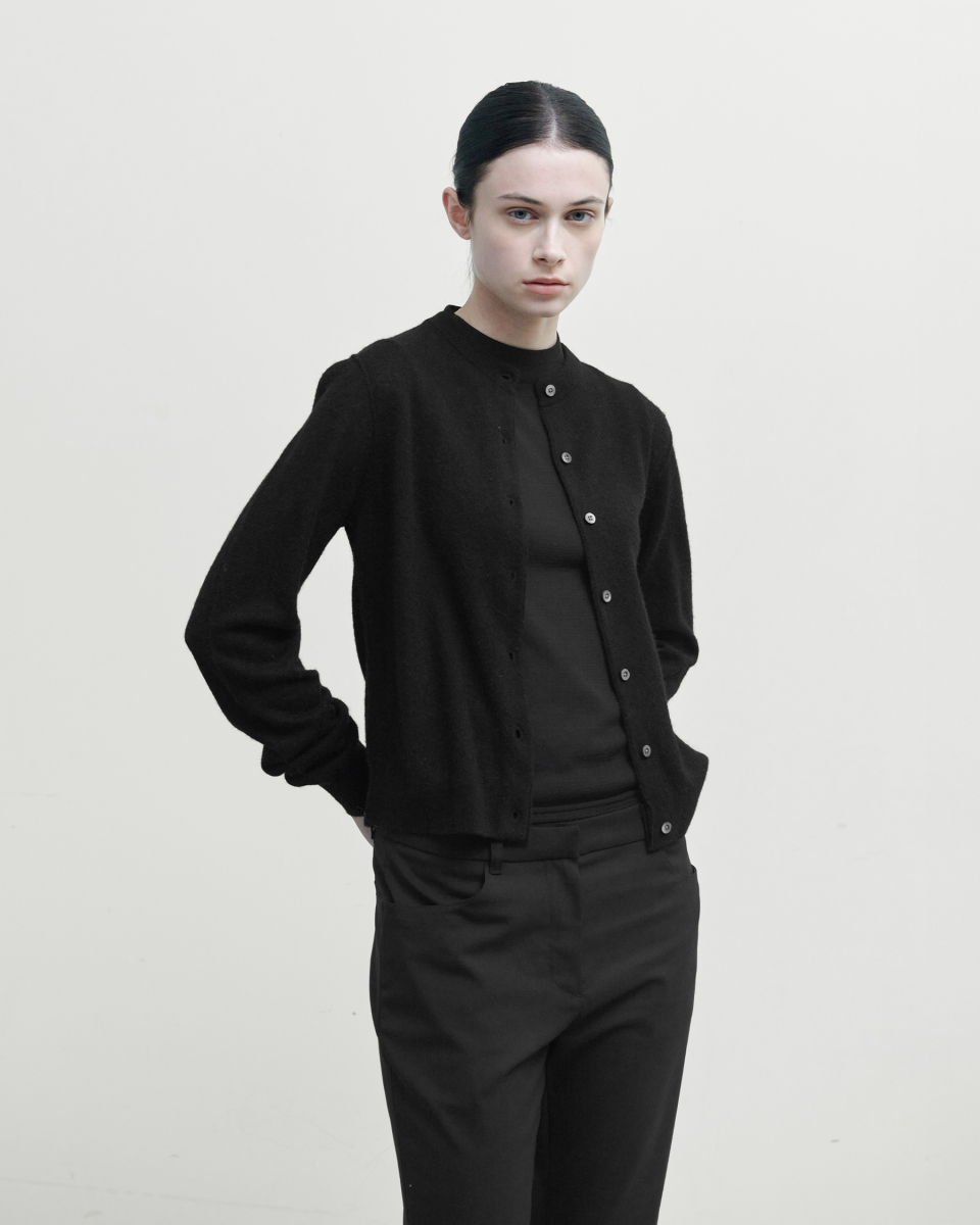 소프트 라운드 가디건은 스탠다드한 실루엣과 부드러운 착용감이 매력적인 제품입니다. 울과 야크, 나일론 혼방 소재를 사용했으며, 헤어리한 표면과 높은 내구성이 특징입니다. 시접을 바깥쪽으로 마감하는 방식을 활용해 피부에 닿지 않아 부드러운 착용이 가능하며, 스탠다드한 실루엣으로 다양한 연출이 가능합니다.