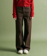 (W) 미드라이즈 세미 와이드 데님 팬츠 브라운