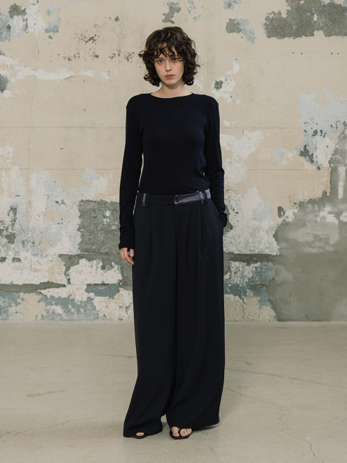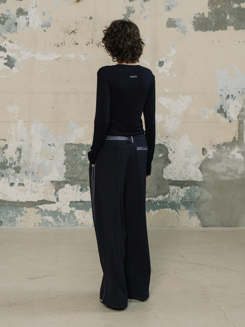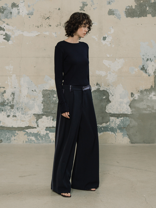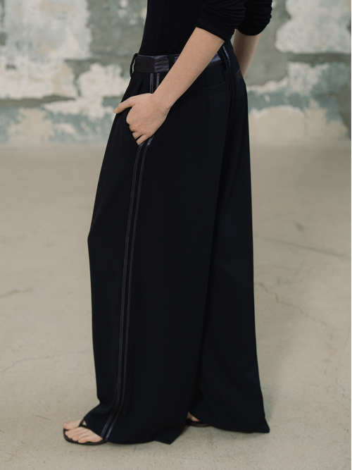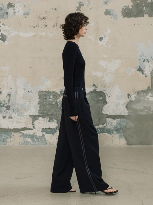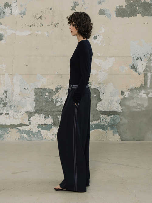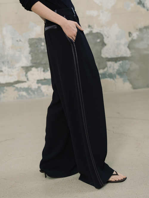 라인 배색 와이드 팬츠_다크네이비