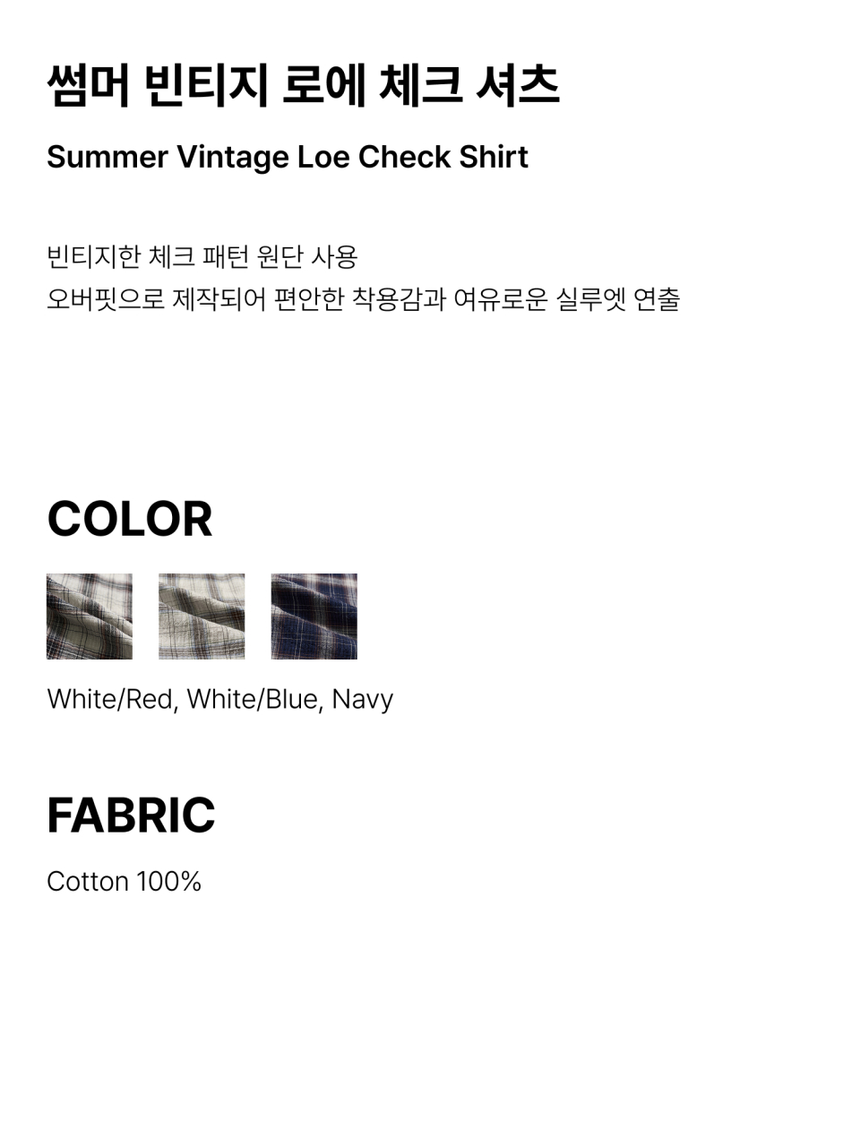 썸머 빈티지 로에 체크 셔츠