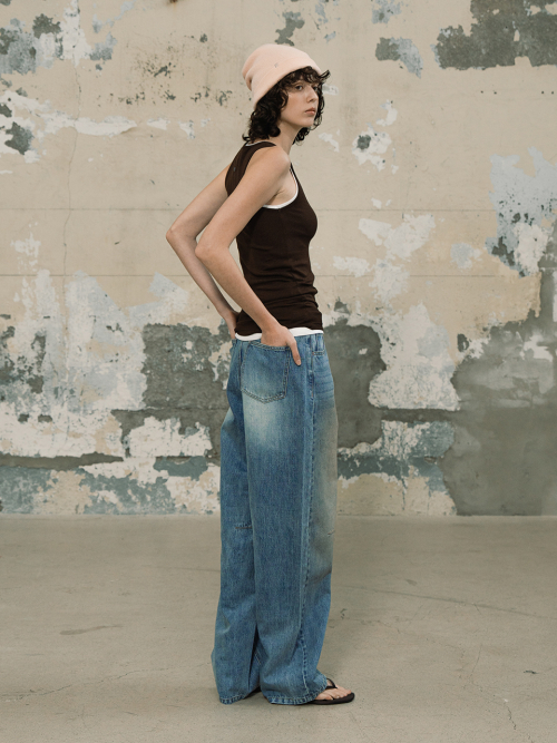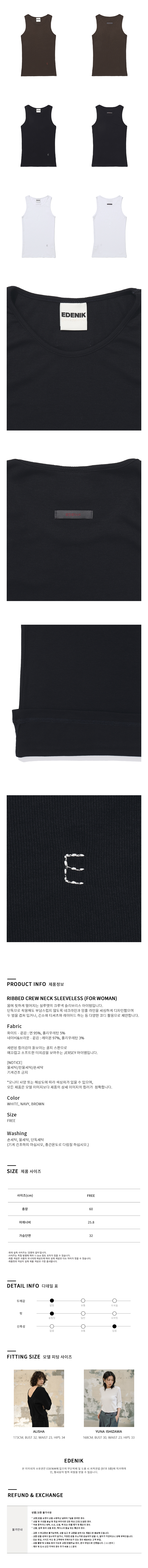 골지 U넥 슬리브리스 (3color)