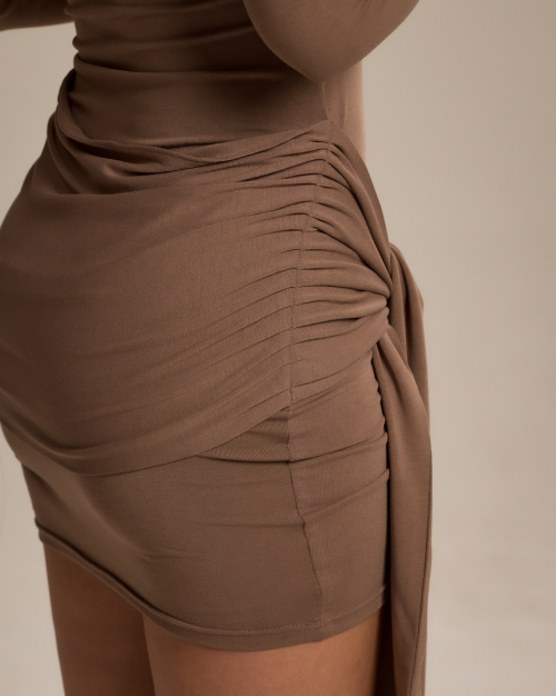 CS HIP SHIRRING MINI DRESS-007 (BROWN)