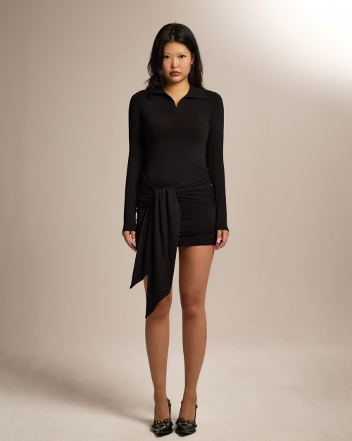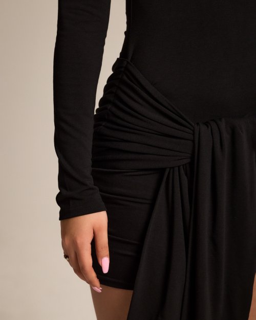 CS HIP SHIRRING MINI DRESS-007 (BLACK)