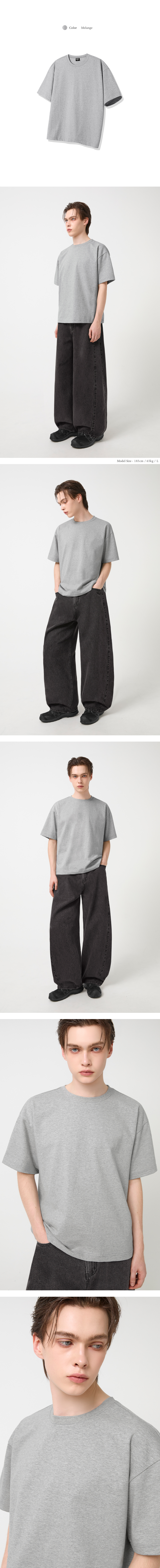 리브드 스냅 헨리넥 크롭 티셔츠 [멜란지그레이]