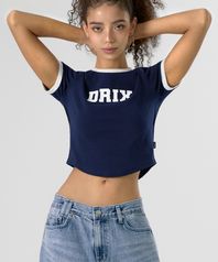우먼스 로고 크롭 링거 하프 슬리브_네이비