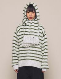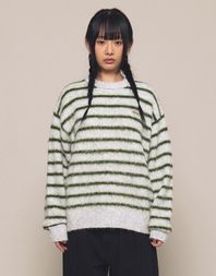 [Mmlg] HAIRLY STRIPE KNIT (GREY)