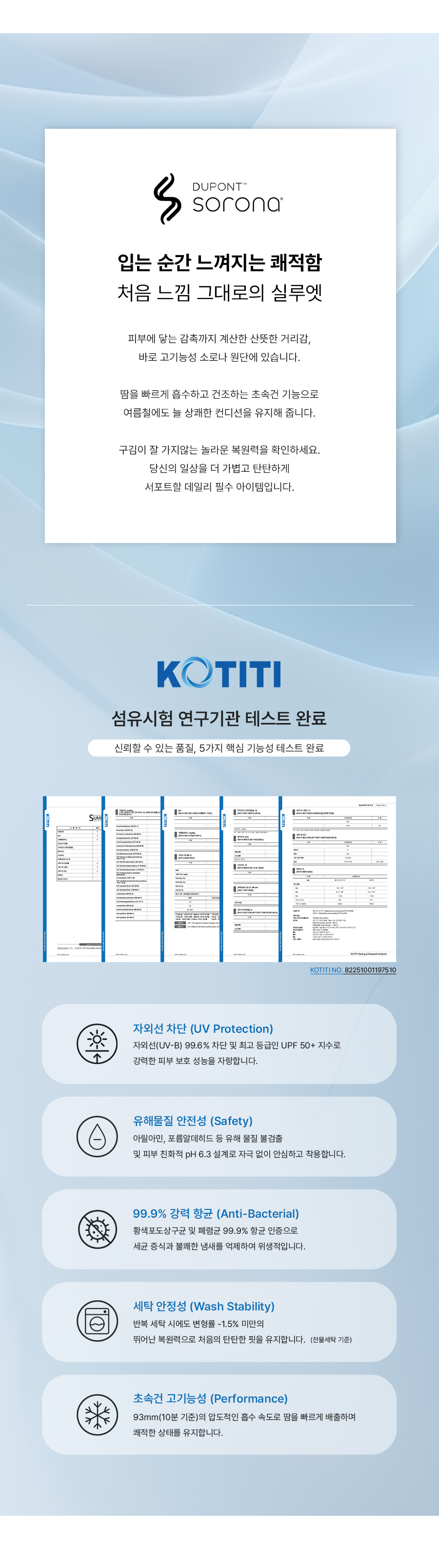 자외선(UV-B) 99.6% 차단 및 최고 등급인 UPF 50+ 지수로