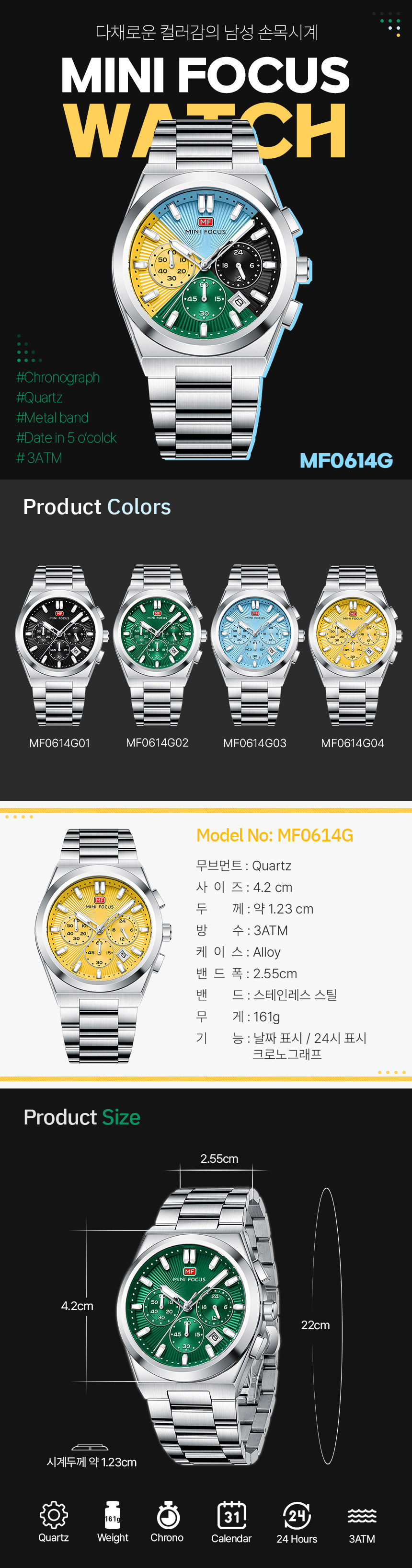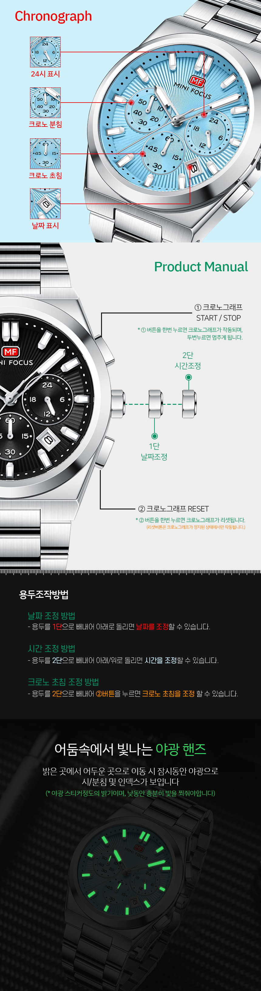 남성 메탈밴드 크로노 손목시계 MF0352G02