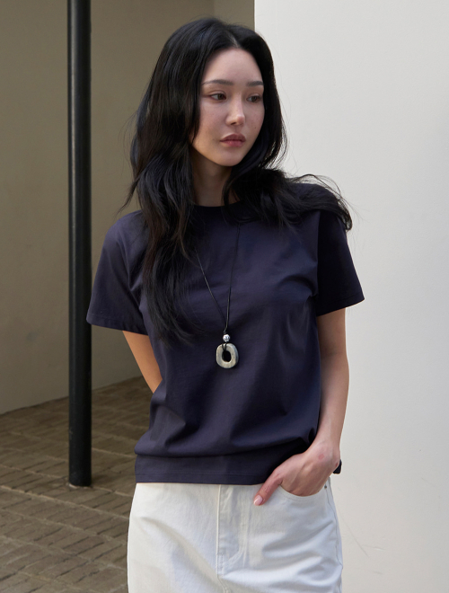- 좁은 넥 시보리 폭과 넥라인 한 줄 스티치로 완성도 강화
