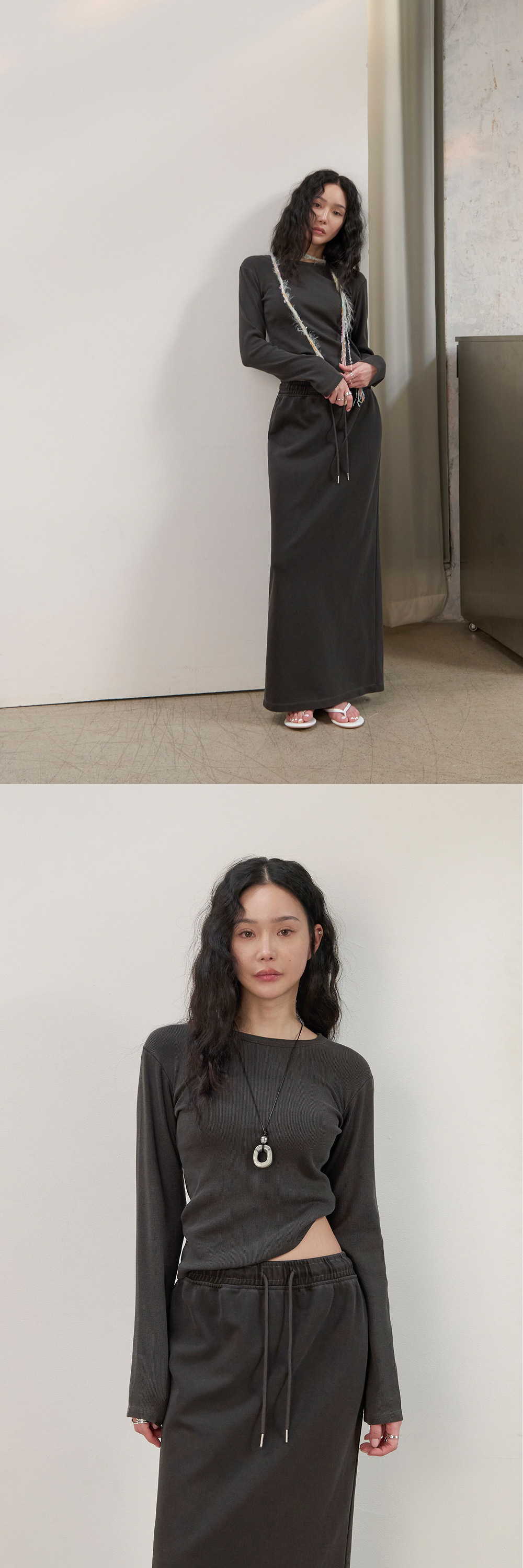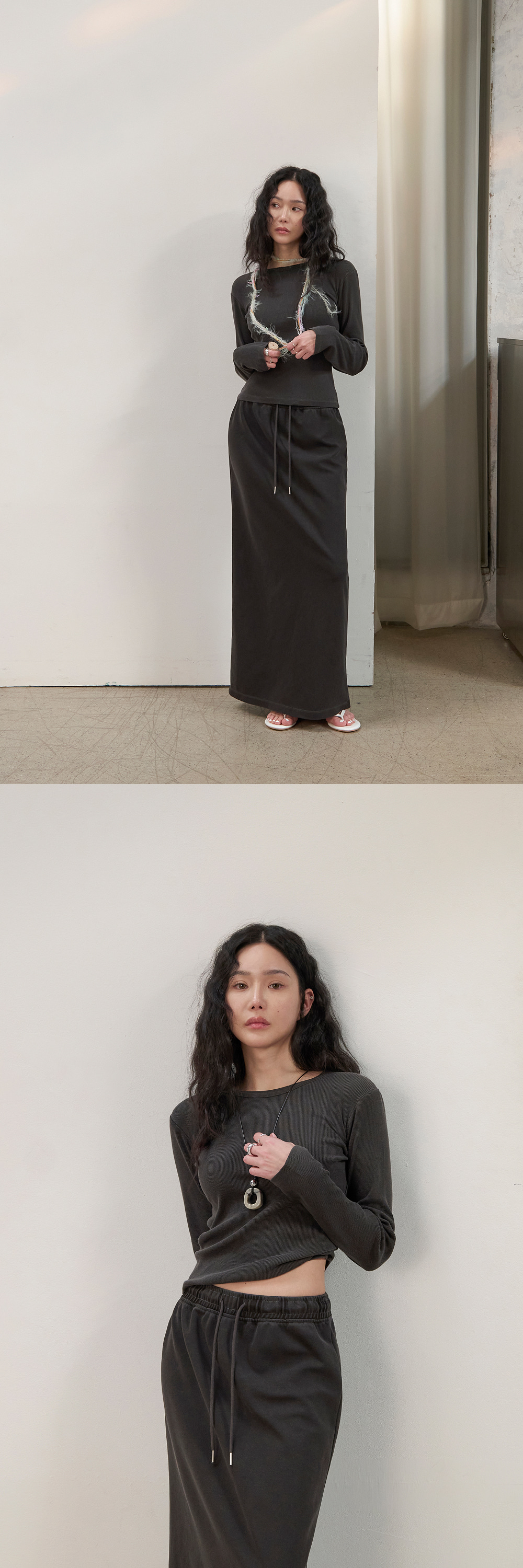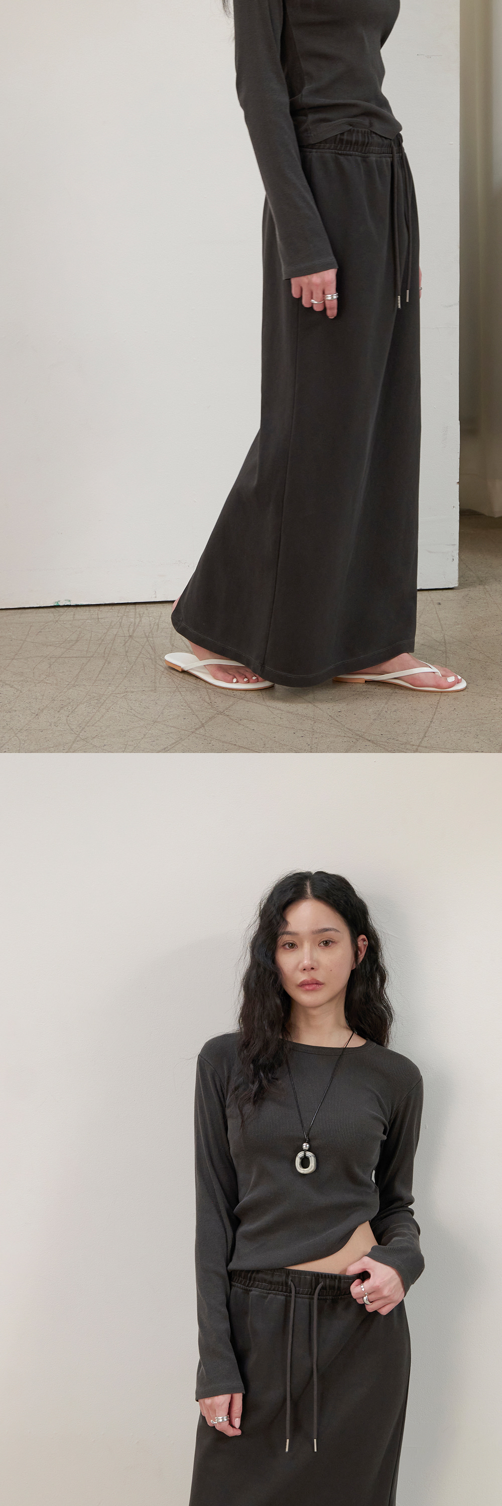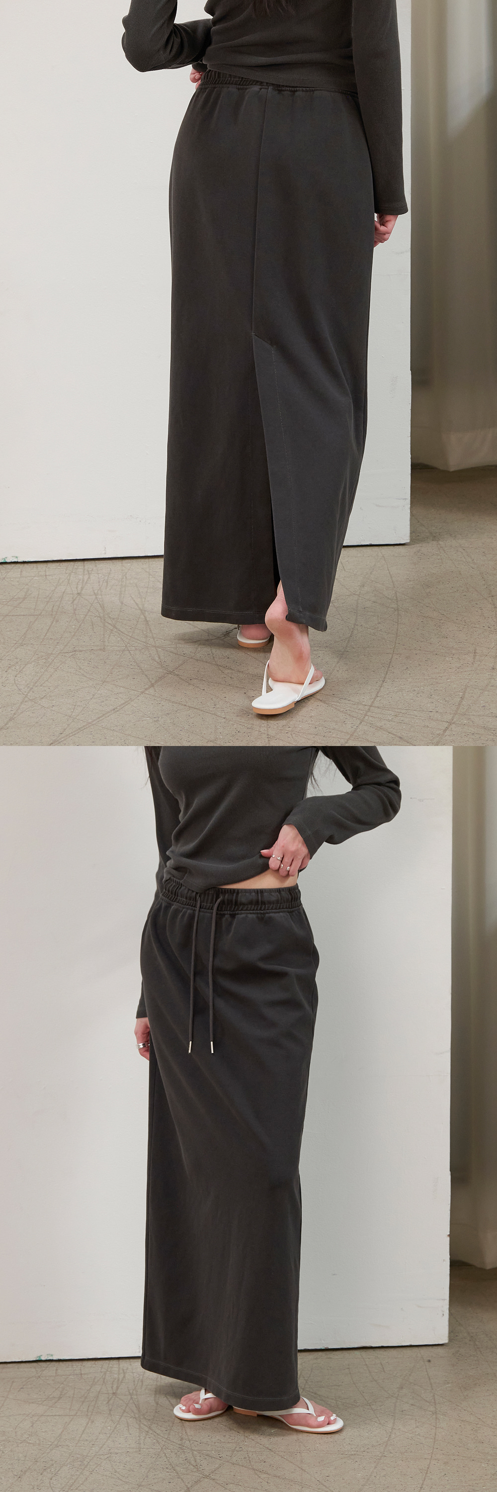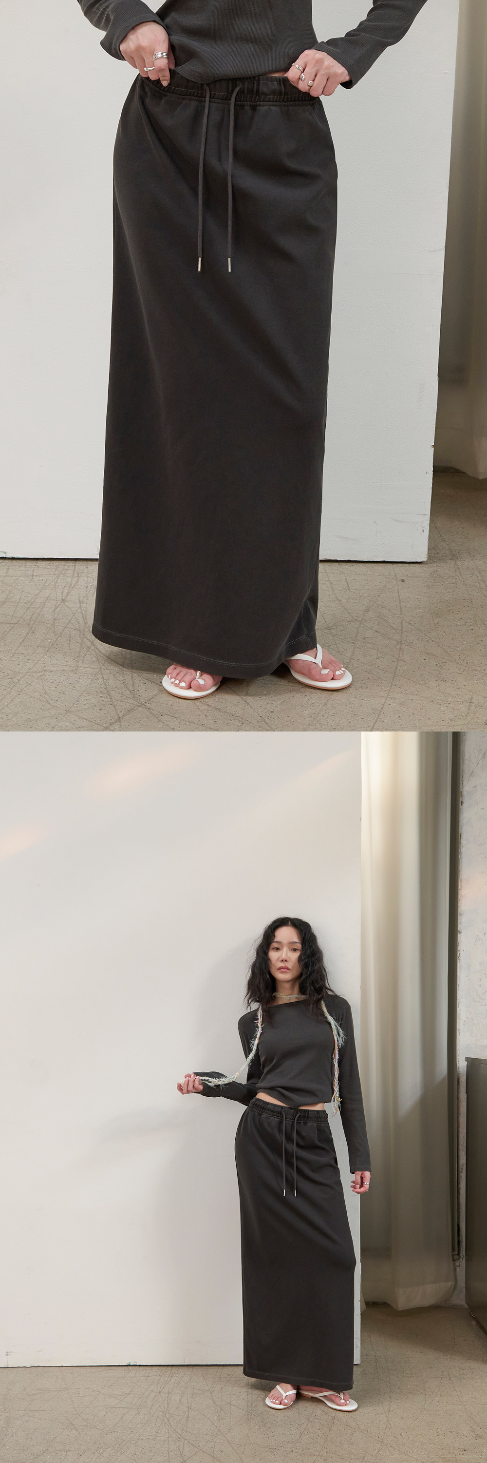 - 피그먼트 워싱 처리된 롱 기장 스커트로 빈티지한 컬러감 연출
