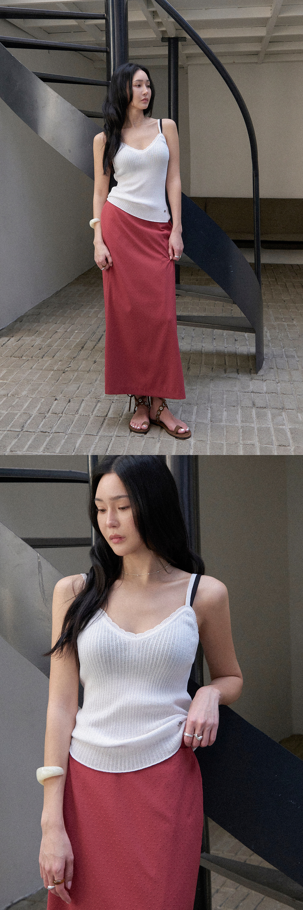 - 얇은 세로 골지 짜임으로 슬림한 실루엣 연출