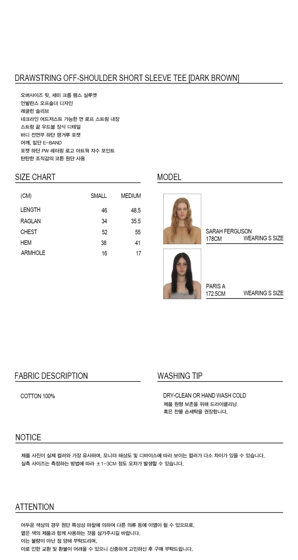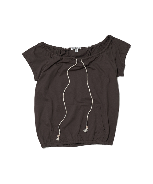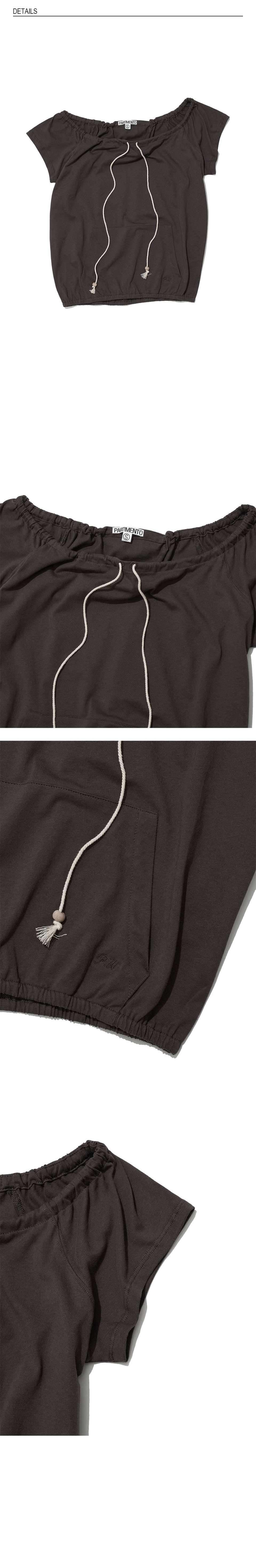 드로스트링 오프숄더 숏슬리브 티_다크 브라운