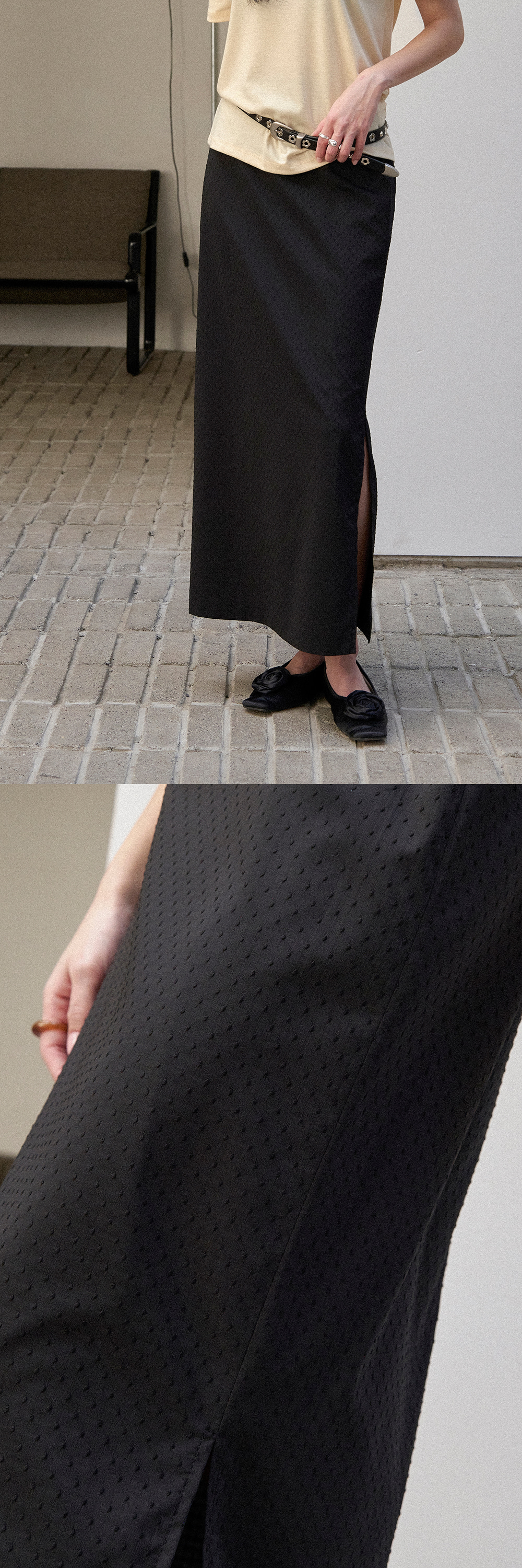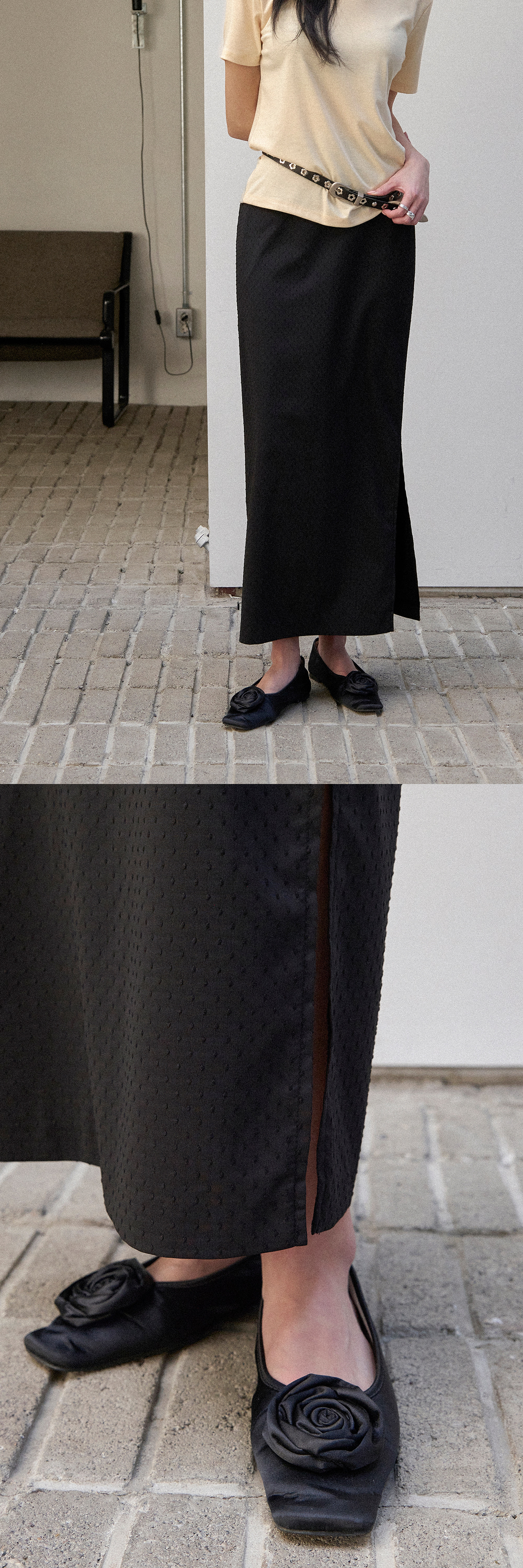 - 폴리, 레이온, 스판 혼방 원단으로 제작되어 부드러운 터치감과 편안한 착용감을 느끼실 수 있습니다.