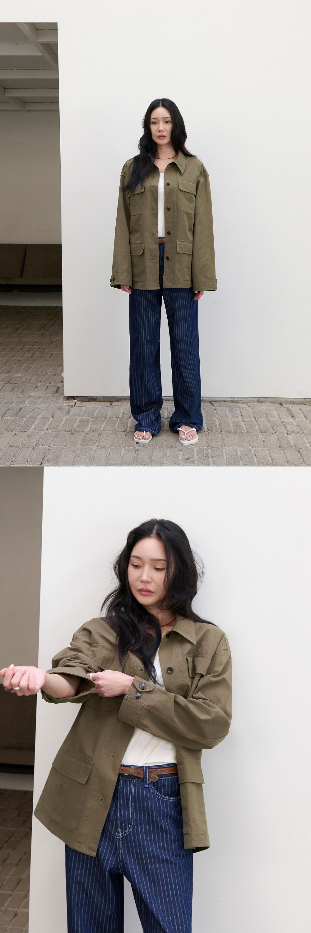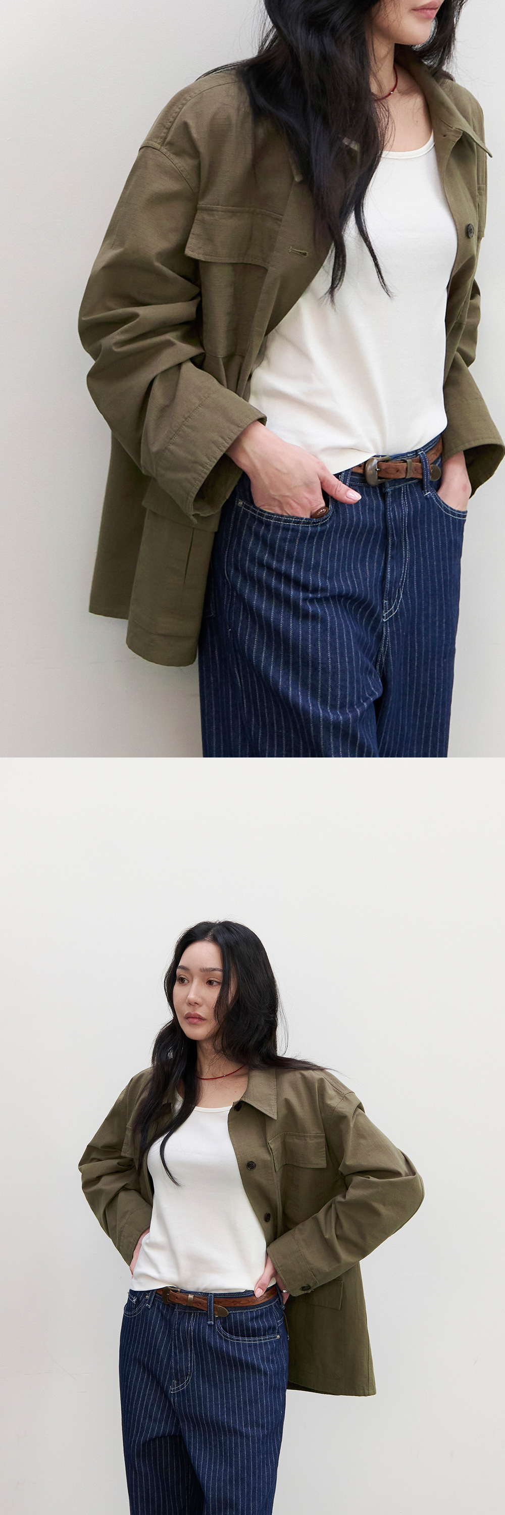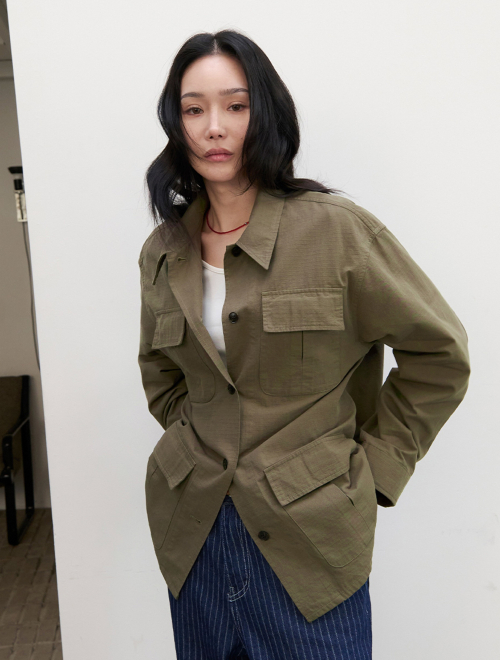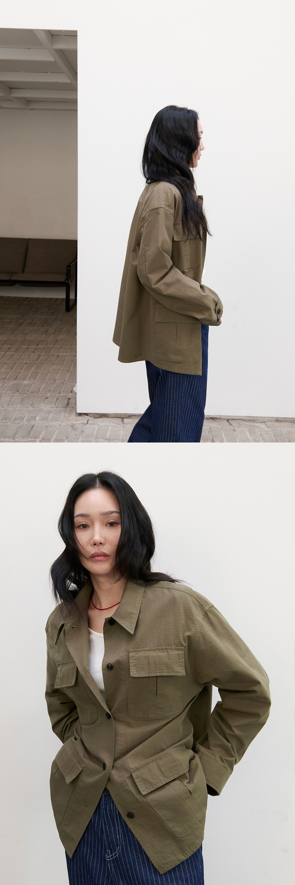 - 앞면 바스트 & 하단 총 네 개의 포켓과 플랩 디테일 적용