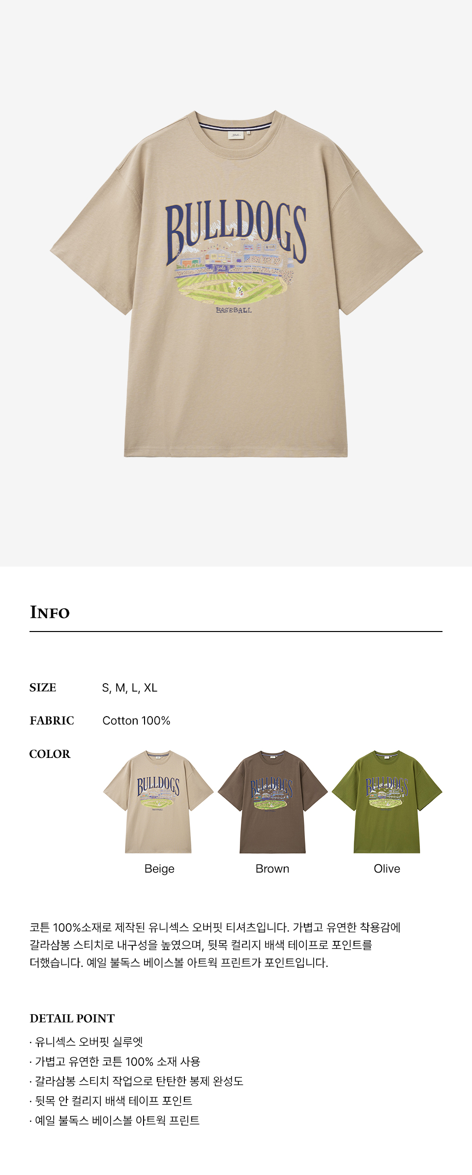 불독스 베이스볼 그래픽 티셔츠_베이지