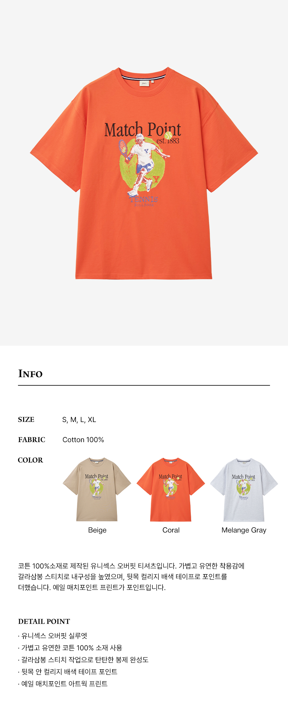 매치포인트 그래픽 티셔츠_코랄