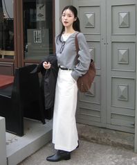 SIST9052 코튼 퍼티그 롱 스커트_White