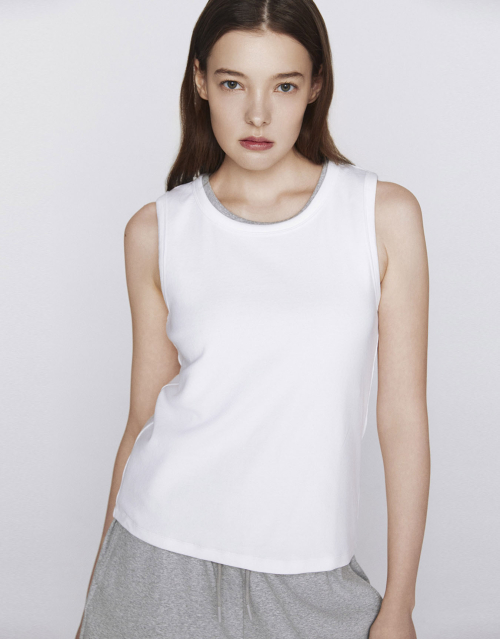 우먼즈 소프트 저지 헨리 탱크 탑 [라이트 그레이]