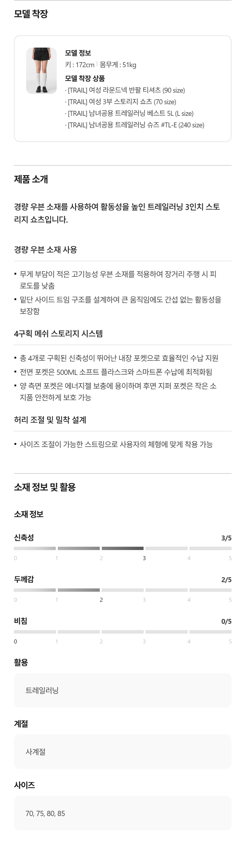 [TRAIL] 여성 3부 스토리지 쇼츠 TVPOX26766BLK