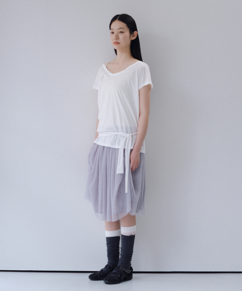 ONE-SHOULDER WRAP T-SHIRT, GRAY