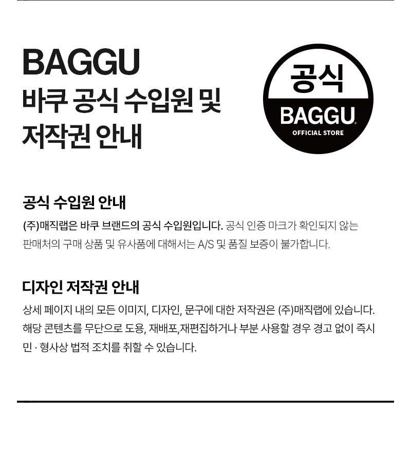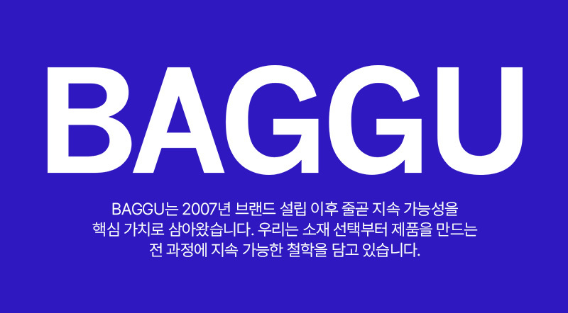 바쿠(BAGGU)는 2007년 미국 뉴욕 브루클린에서 창립된 브랜드로, 일회용 비닐 사용을 줄이자는 취지에서 시작된 친환경 브랜드입니다. 모든 사람들이 바쿠의 가방을 한 개씩 갖게 하겠다는 회사의 비전처럼 합리적인 가격과 데일리 룩에 어울리는 화사한 디자인, 튼튼한 소재로 만들어 실용적인 가방을 추구합니다.