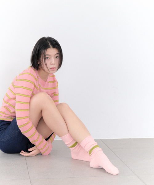 [IHM26SS18] 원라인 니트 삭스 핑크