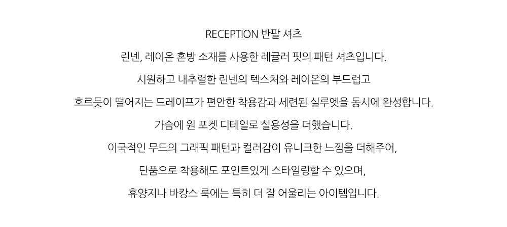 남성 RECEPTION 반팔 셔츠 (VG11SH011MUL)