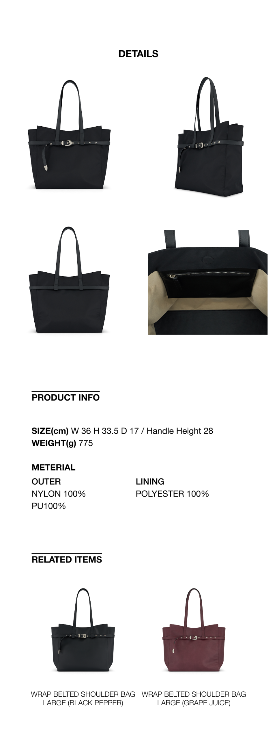 [WITH 서해]WRAP BELTED NYLON SHOULDER BAG LARGE(BLACK PEPPER)