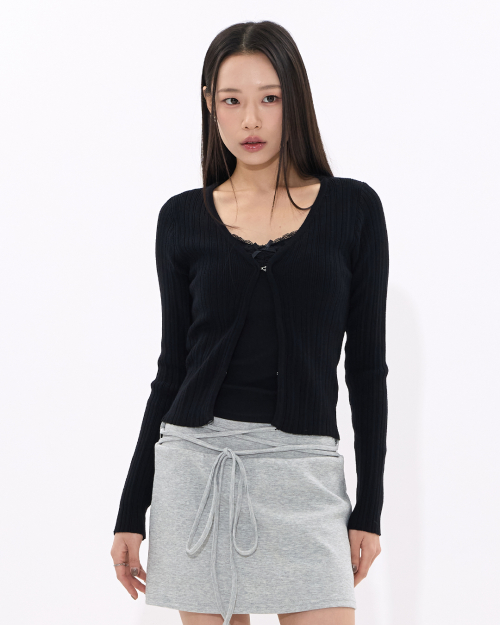 립 타이 카디건 (CHARCOAL)