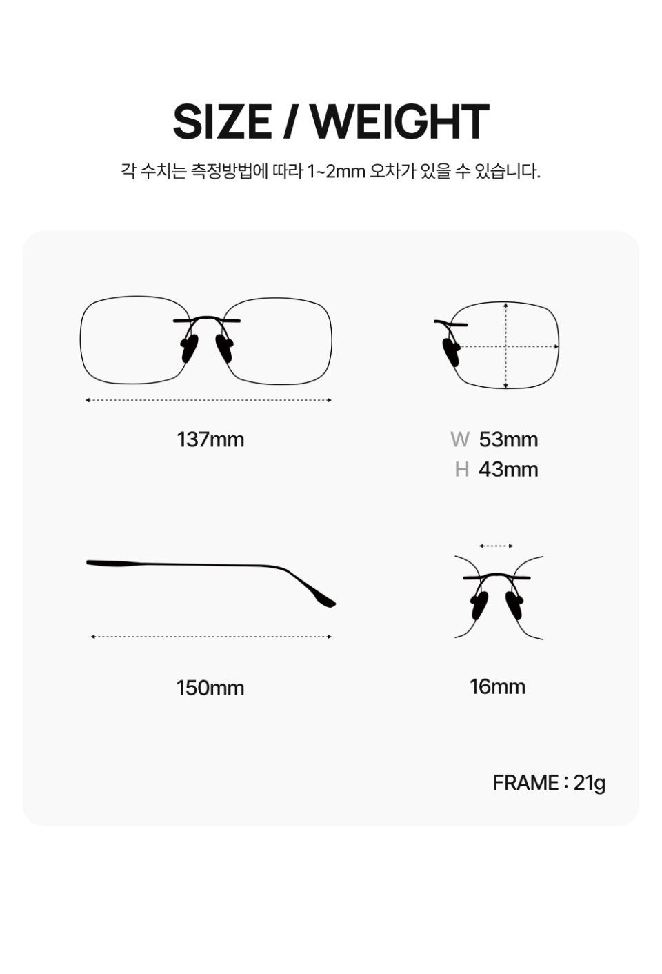 [블루라이트 차단] 오버사이즈 실버 티탄 스퀘어 무테