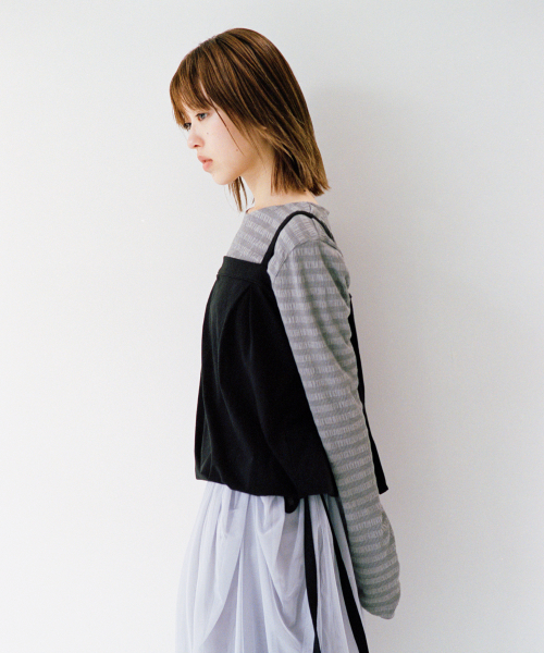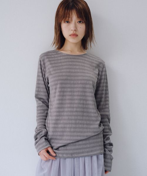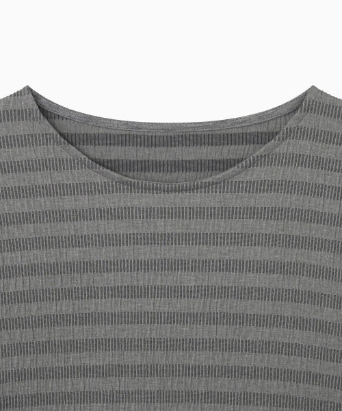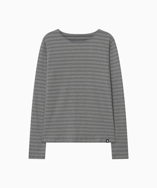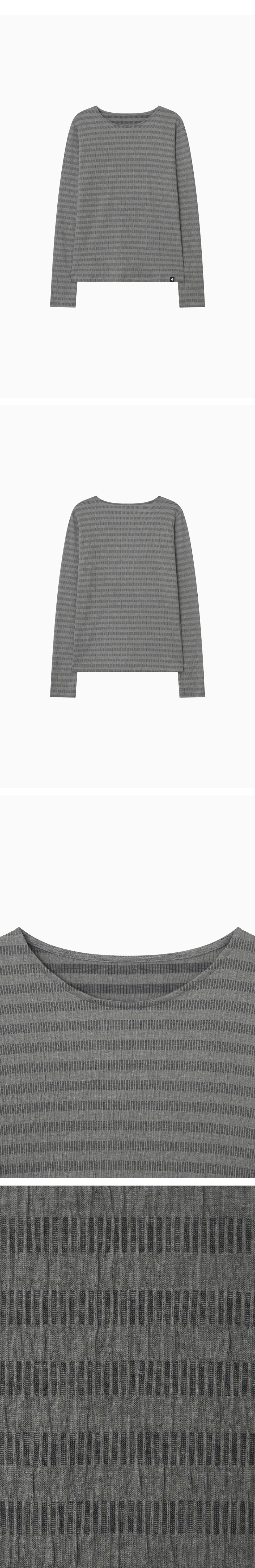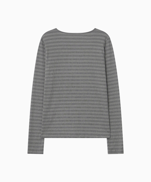 STRIPE PLEATED LONG SLEEVE, CHARCOAL