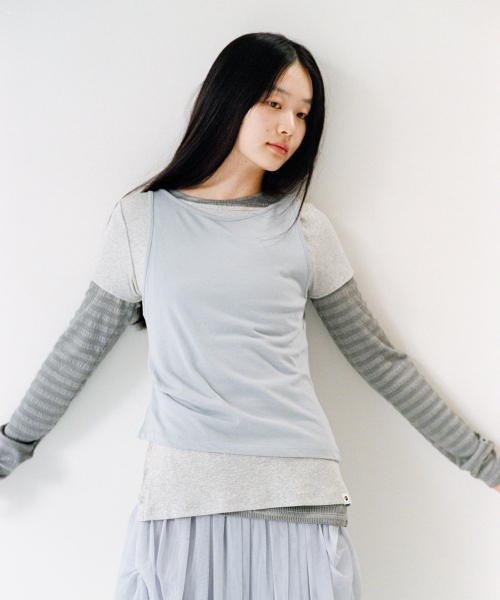TWO-WAY LAYERED T-SHIRT, GRAY
