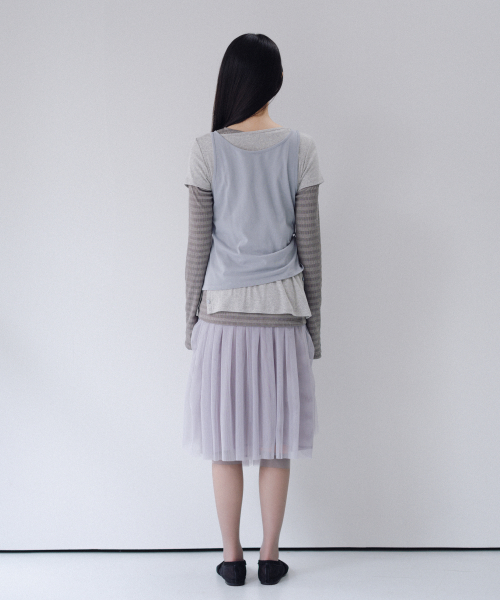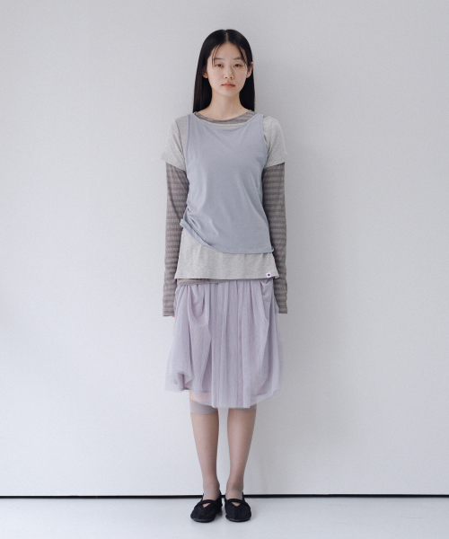 SHEER DRAPE BANDING SKIRT, GRAY