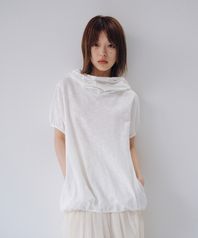 COWL NECK HOODED TEE, WHITE