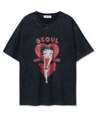 베티붑 먼로 서울 오버핏 반팔 티셔츠_차콜