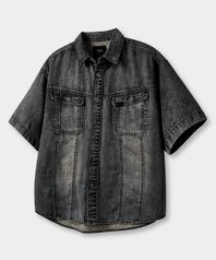 페이드워싱 데님 트러커 하프 셔츠_빈티지 블랙