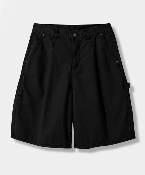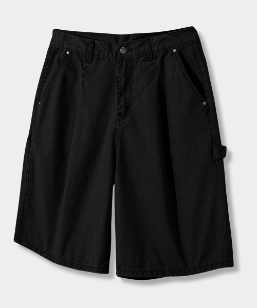 바이오워싱 카펜터 버뮤다 코튼 팬츠_블랙