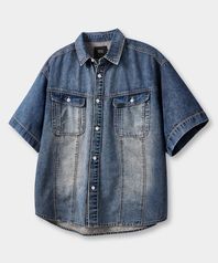 페이드워싱 데님 트러커 하프 셔츠_더스트 인디고