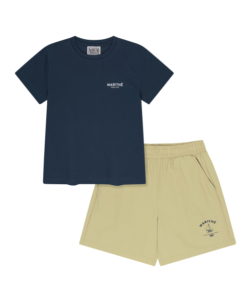 KIDS BOAT TEE + WOVEN PANTS SET-UP navy