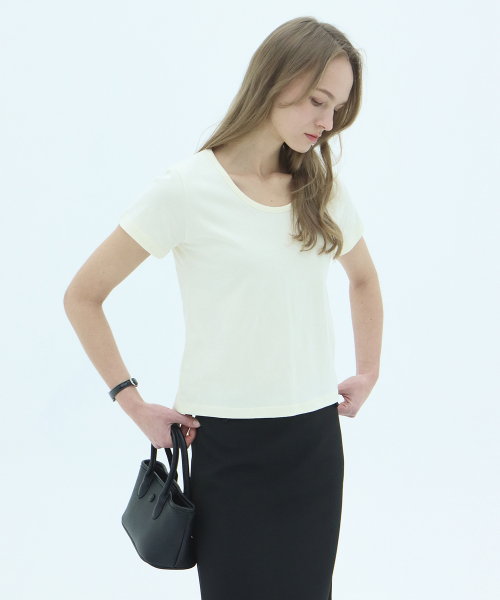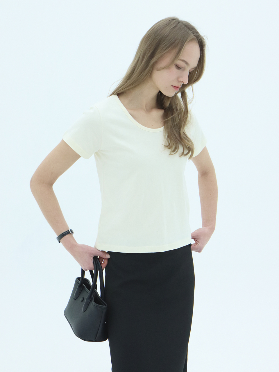 오로지 면 100%의 정직한 결로 완성된레이크스튜디오의 Essential U-Neck T-shirt입니다.