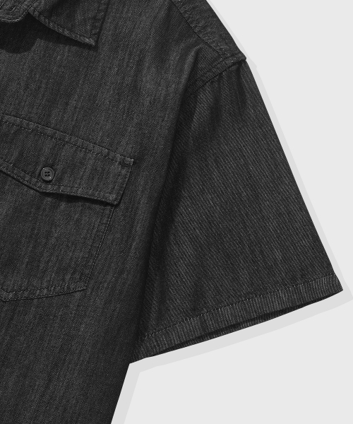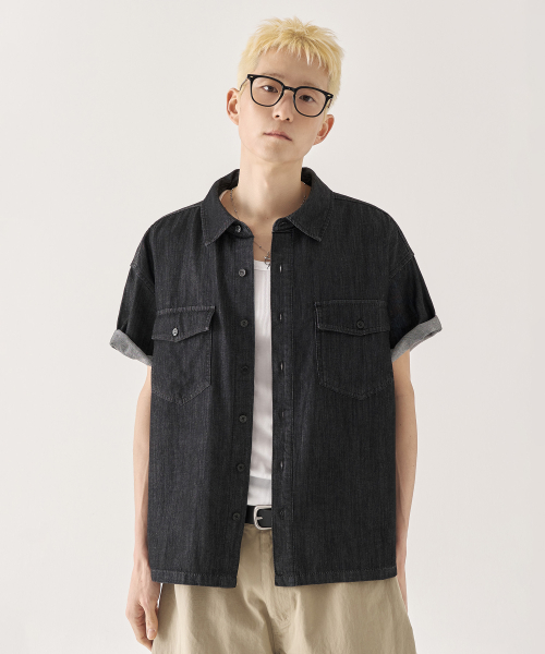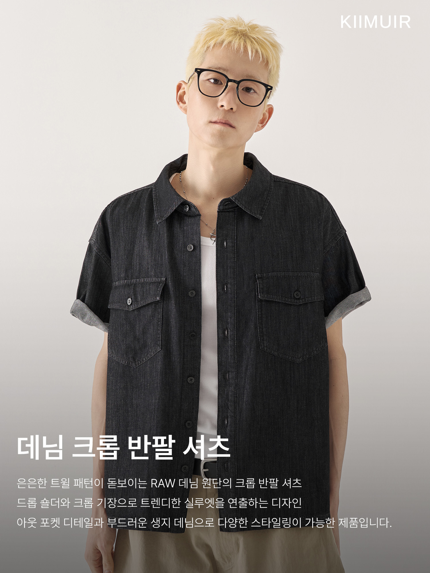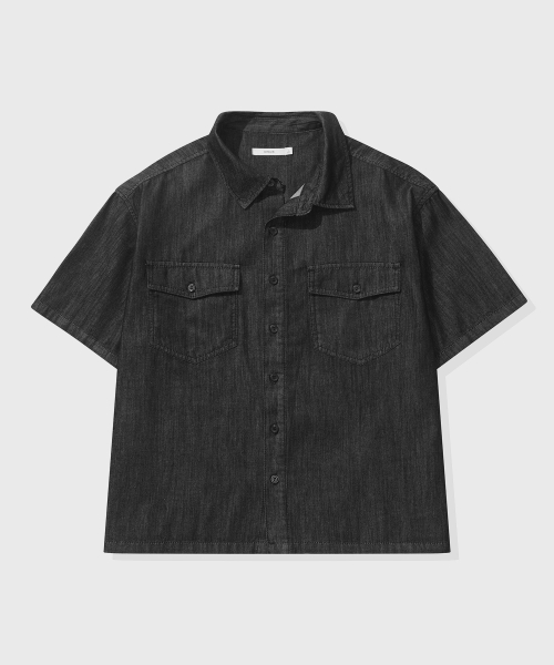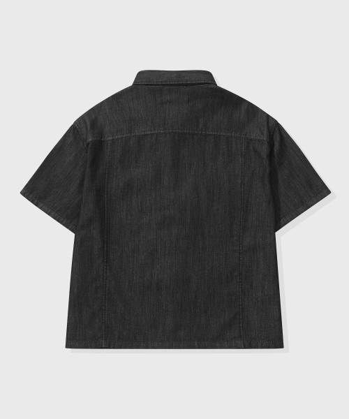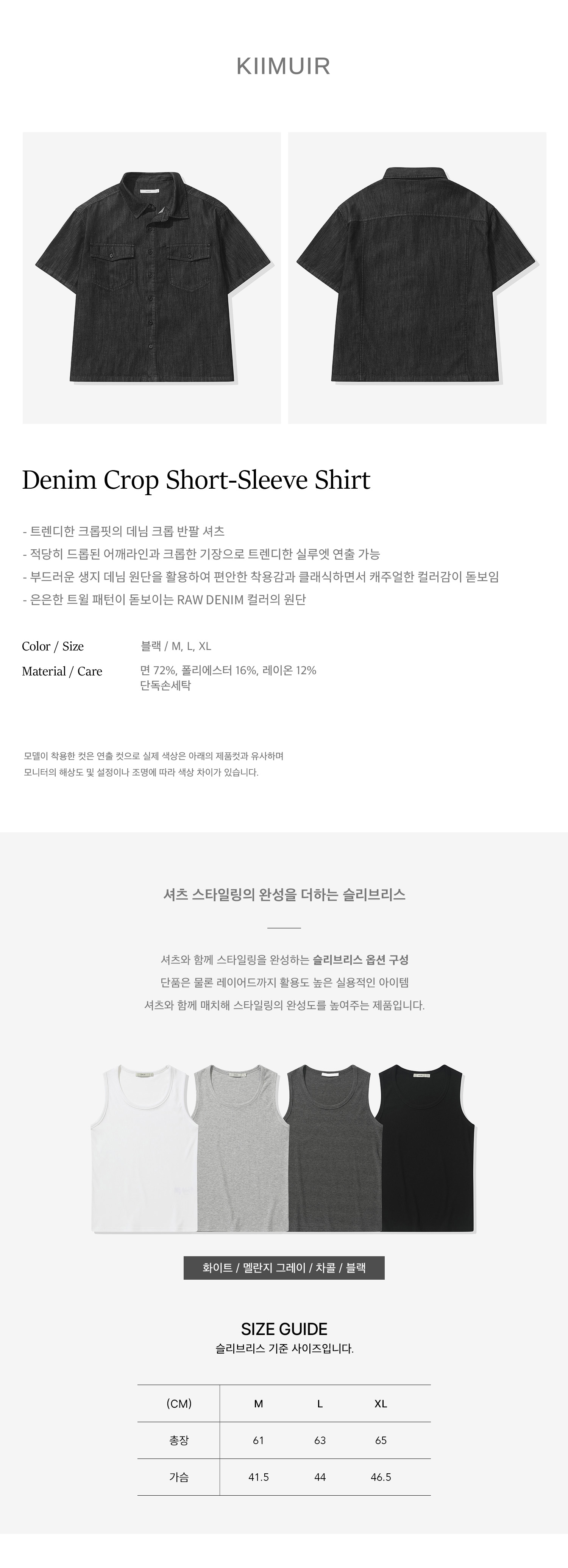 [크롭] 데님 크롭 반팔 셔츠_블랙 [나시 선택]