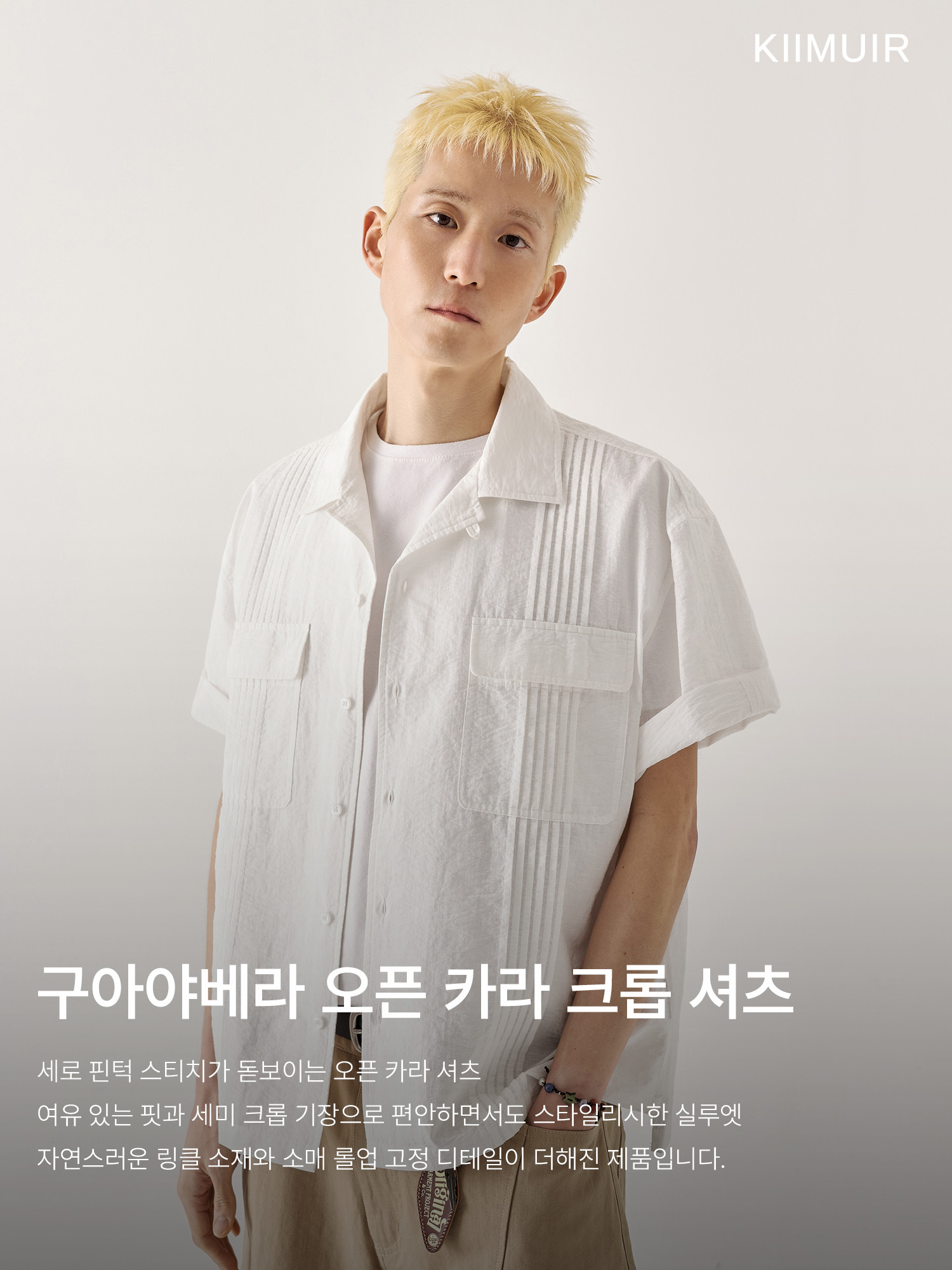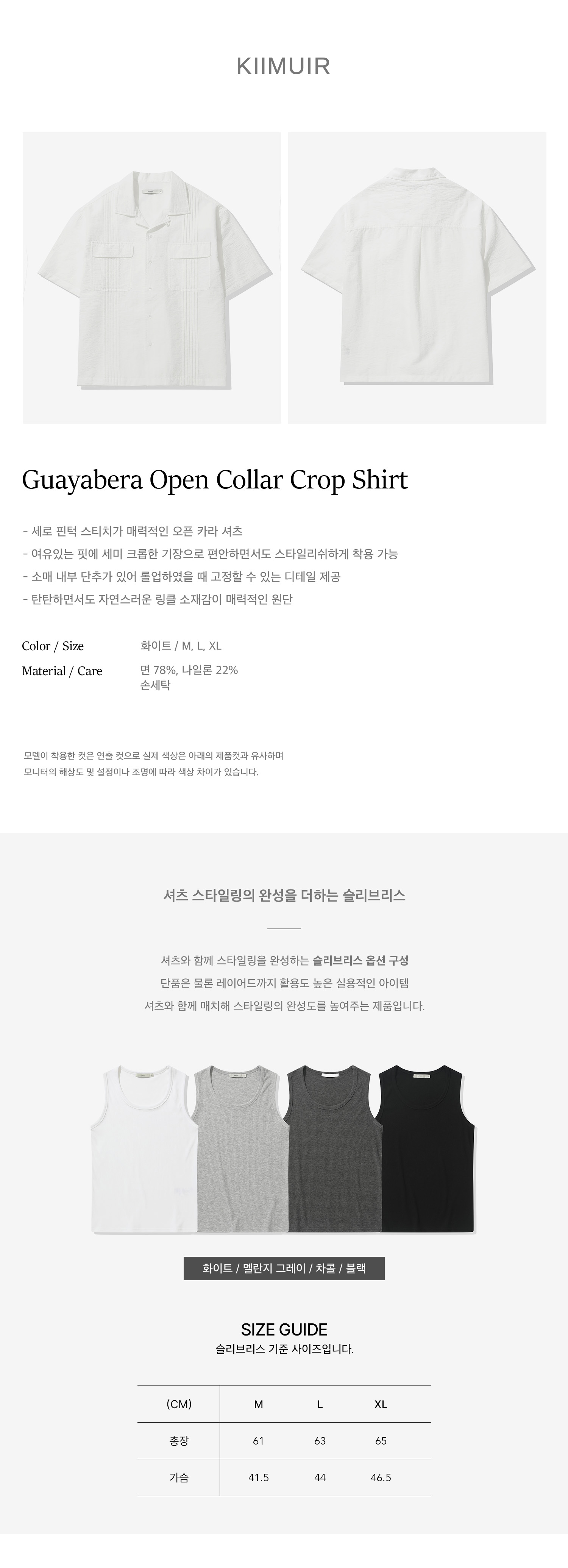 [크롭] 구아야베라 오픈 카라 크롭 셔츠_화이트 [나시 선택]